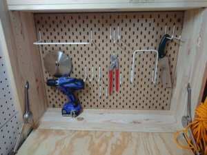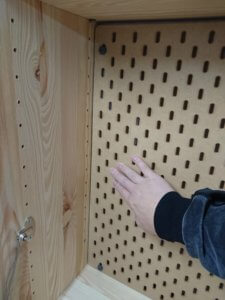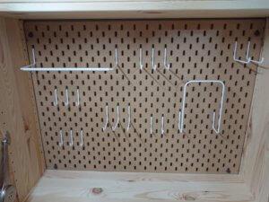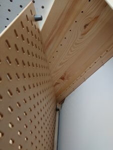 壁面に収納すれば良いんです♪ちょうど、IKEAで購入した有孔ボードがあるのでそれをはめ込んじゃいましょう。(サイズも実はぴったしwww)
